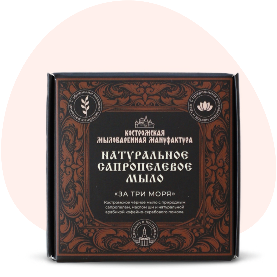 Костромское чёрное мыло с природным сапропелем, натуральным эфирным маслом пихты, экстрактами ромашки и чистотела