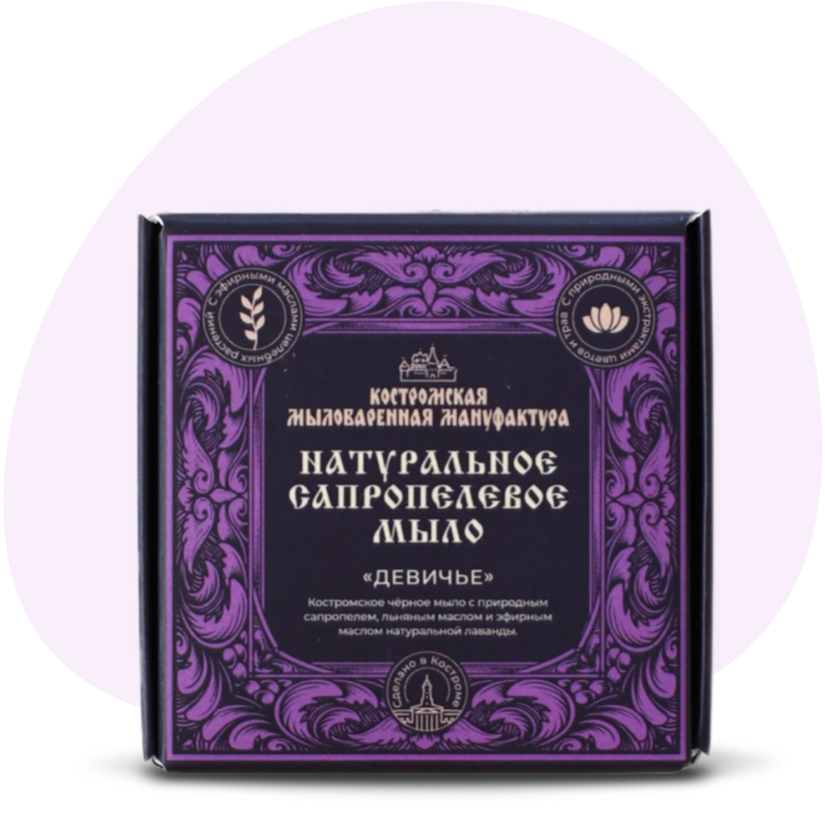 Костромское чёрное мыло с природным сапропелем, льняным маслом и эфирным маслом натуральной лаванды